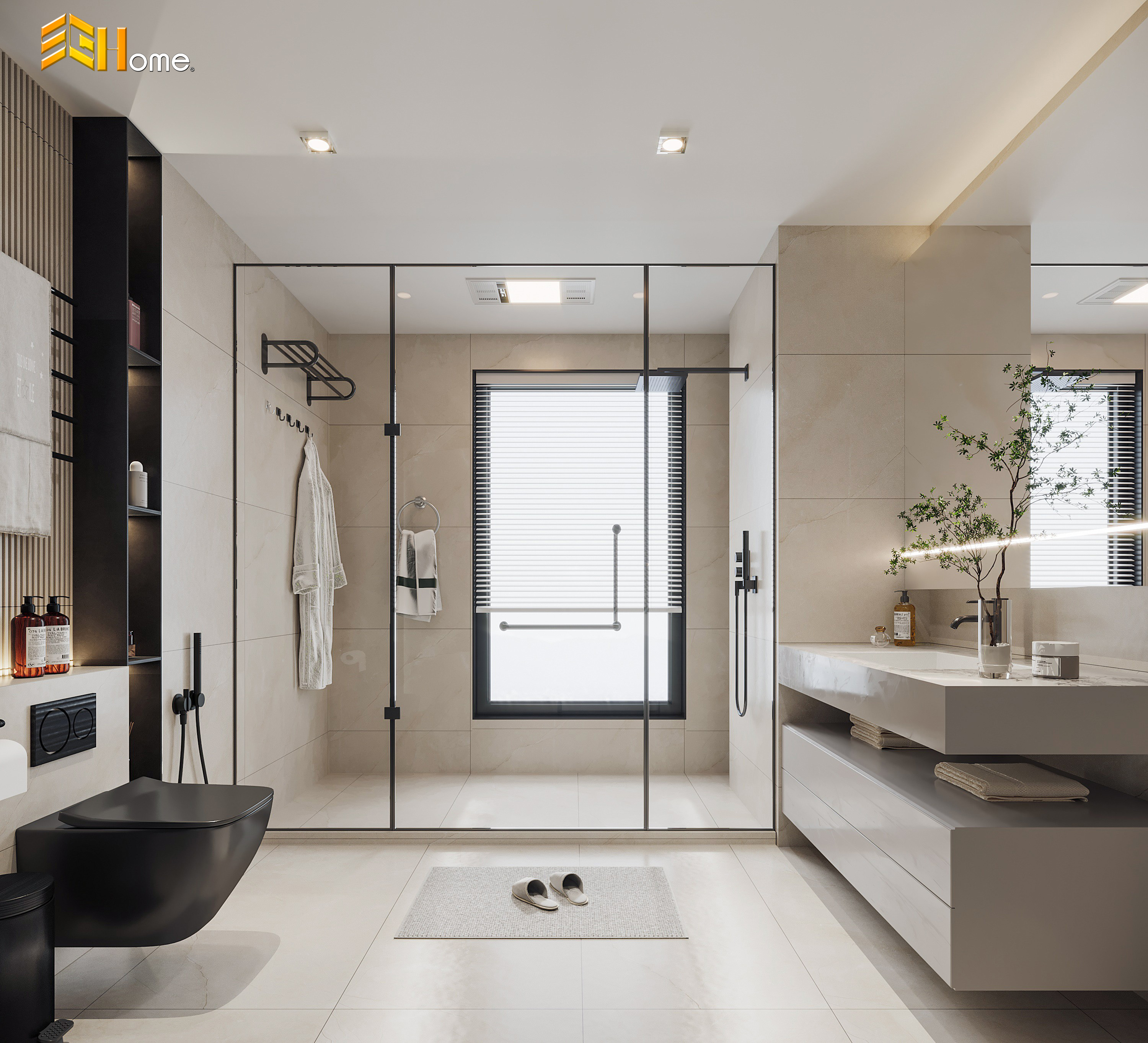 Thiết kế tủ lavabo với tone trắng nhẹ nhàng nhà chị Linh - Củ Chi