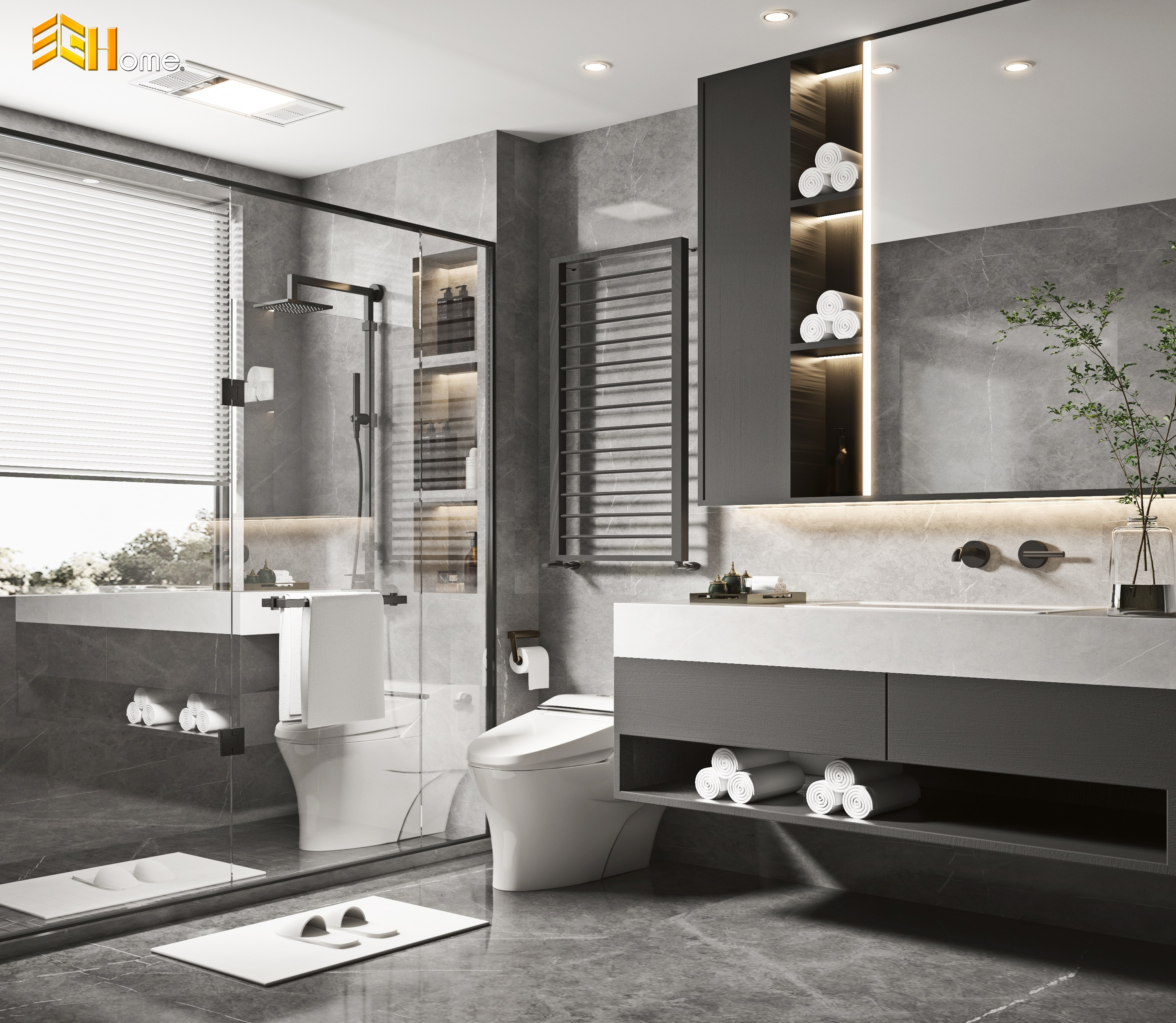 Tủ lavabo kết hợp tủ máy giặt trong phòng tắm tiện lợi
