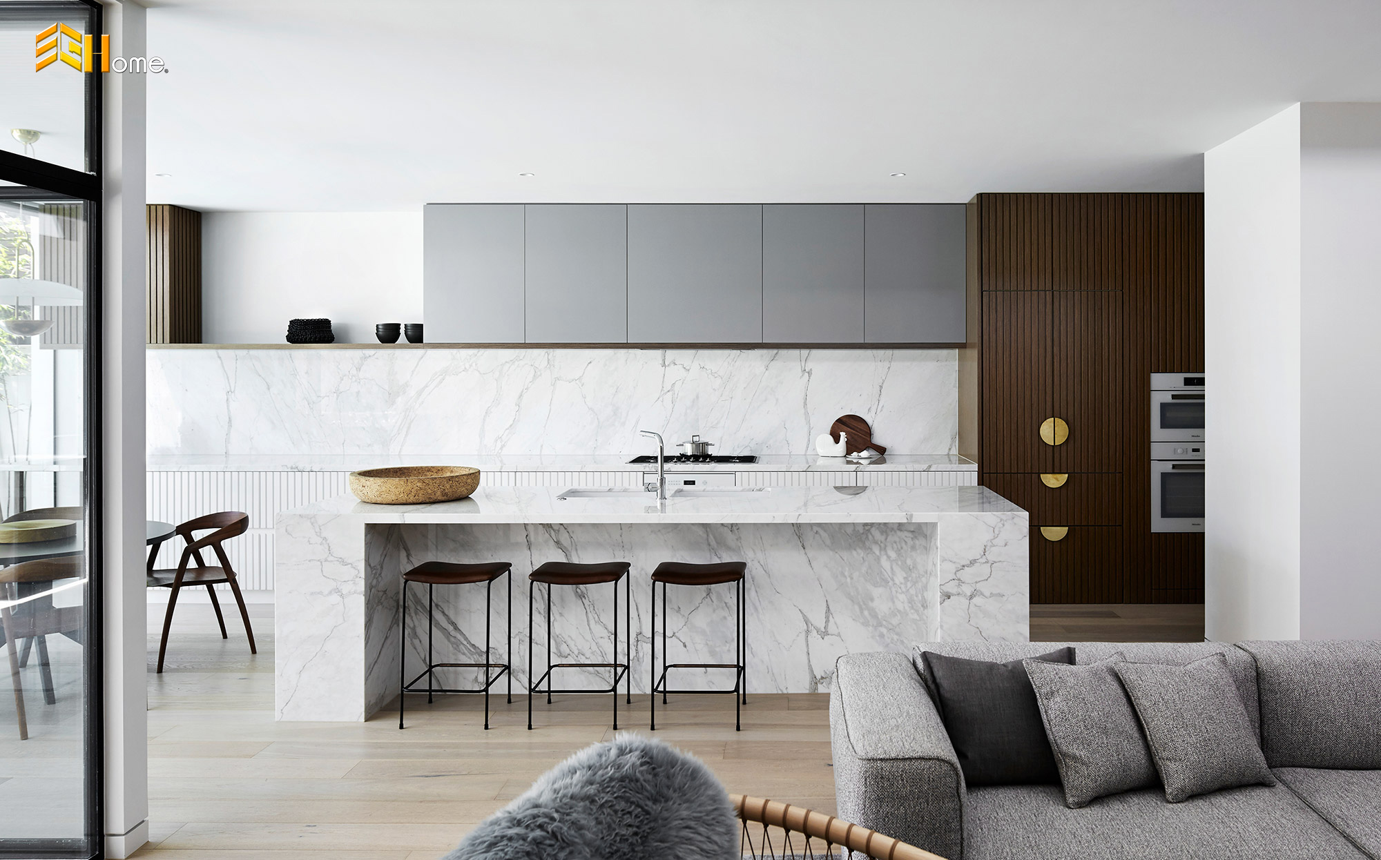 Thiết kế tủ bếp chữ I kết hợp đảo bếp phong cách Âu Mỹ nhà anh Thái - Quận 2