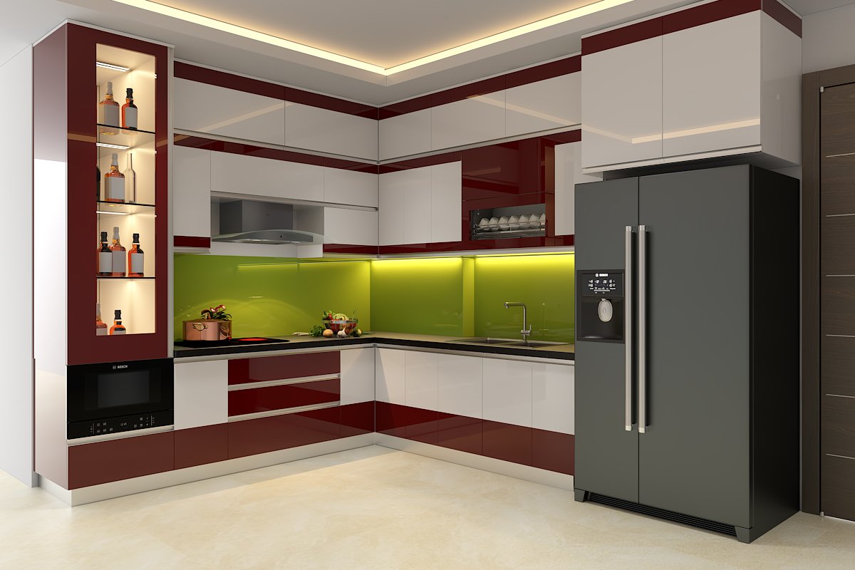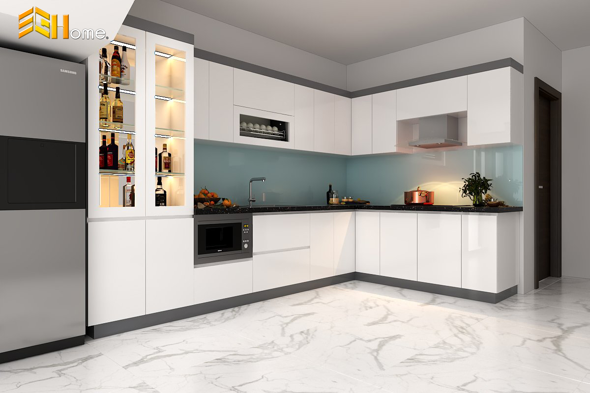 Khám phá tủ bếp chữ L sơn men bóng nhà chị Nhật Anh