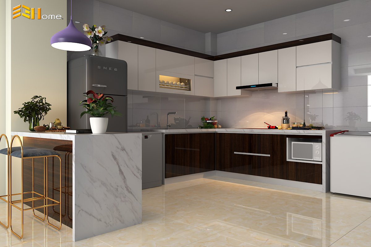 Tủ bếp chữ L hiện đại nhà chị Phương - Hóc Môn