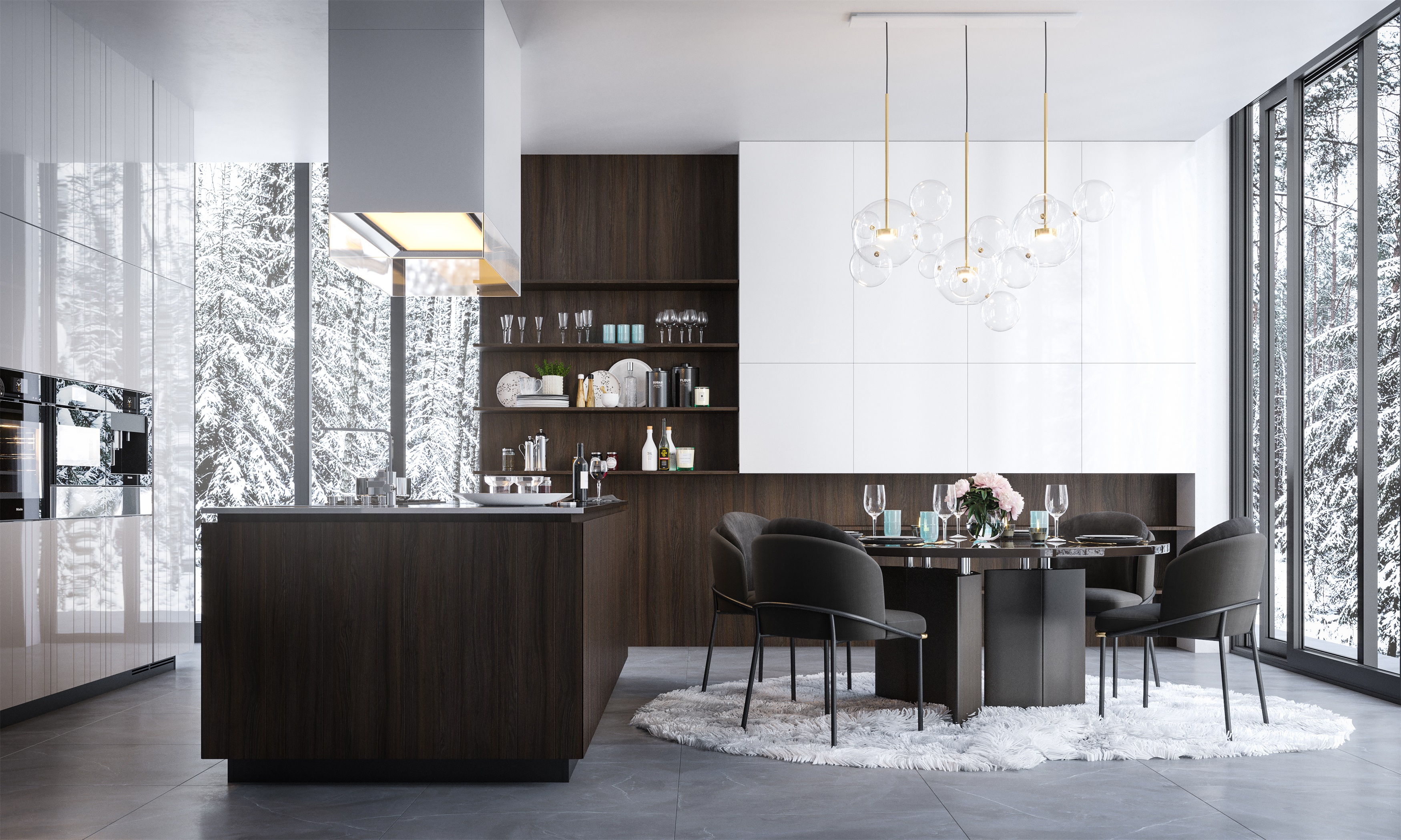 Tủ bếp bếp nhựa cánh kính khung hợp kim nhôm tại Showroom Sài Gòn Homes