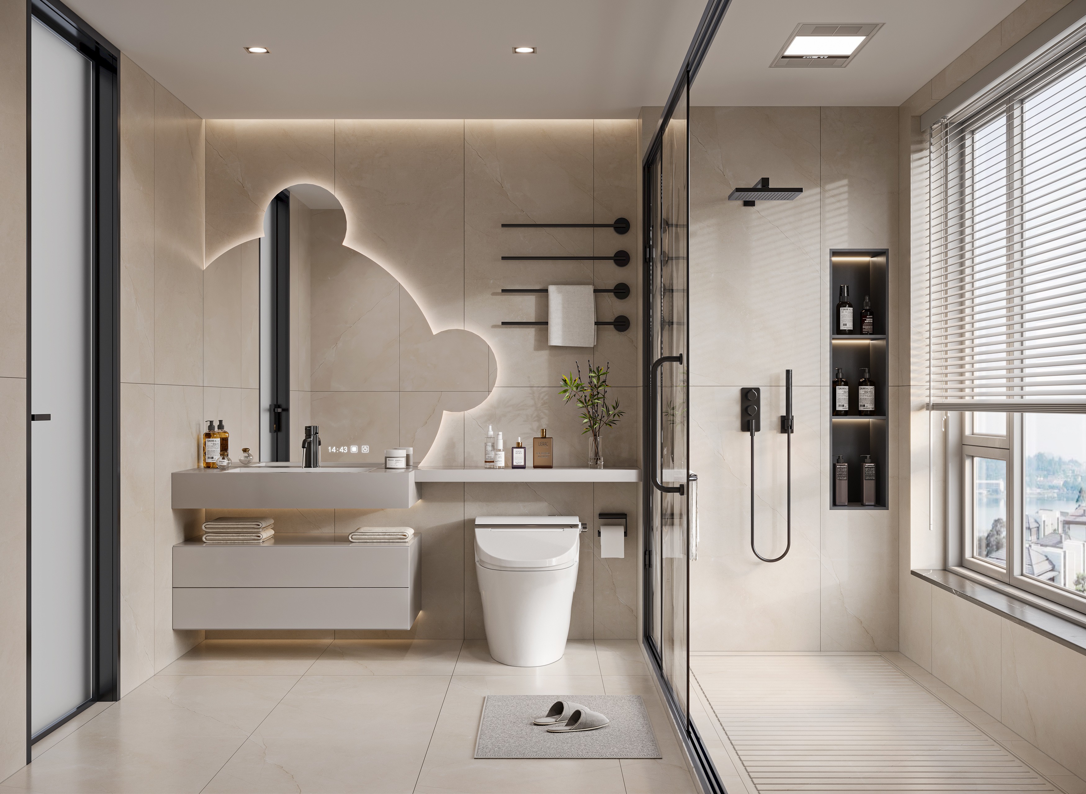 Dù xu hướng thiết kế phòng tắm luôn được cập nhật và thay đổi liên tục, màu trắng vẫn luôn là gam màu thời thượng đi cùng năm tháng. Màu trắng không chỉ tạo cảm giác sáng sủa và thoáng đãng mà còn là biểu tượng của sự tinh khiết và thanh lịch. Đặc tính ưu việt của màu trắng là khả năng phản chiếu ánh sáng, giúp không gian phòng tắm trở nên sáng hơn và rộng rãi hơn.