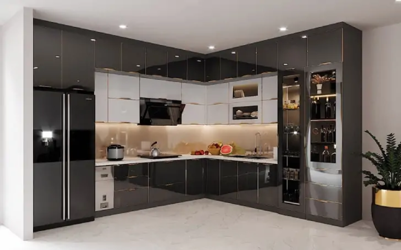 Kích thước và kiểu dáng tủ bếp: Tủ bếp càng lớn, càng nhiều chi tiết cầu kỳ thì giá càng cao.