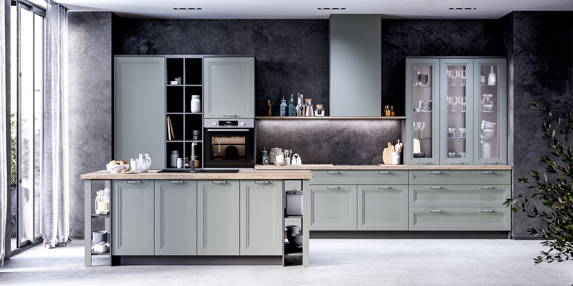 Nếu bạn yêu thích sự thoáng đãng, bếp chữ I dài 4m với kệ mở sẽ là lựa chọn lý tưởng. Những kệ mở không chỉ giúp bếp trở nên thoải mái hơn mà còn dễ dàng trưng bày các vật dụng hoặc bát đĩa yêu thích. Hơn nữa, kệ mở giúp bạn dễ dàng lấy đồ dùng cần thiết mà không phải mở nhiều ngăn kéo, tiết kiệm thời gian nấu nướng.