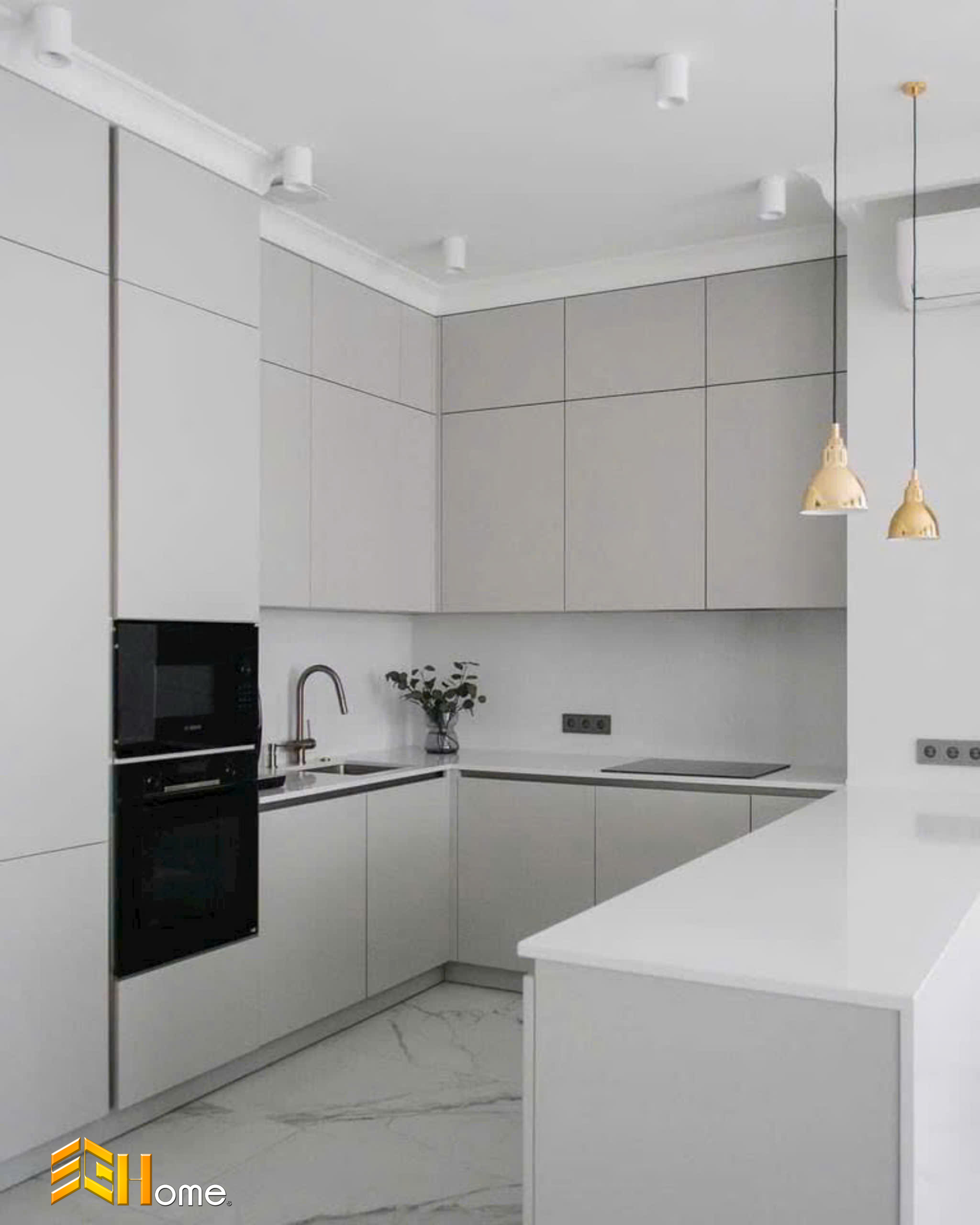 - Màu xám mang đến vẻ đẹp hiện đại, tinh tế và sang trọng cho không gian bếp. Nó dễ dàng phối hợp với nhiều phong cách thiết kế nội thất khác nhau, từ tối giản đến tân cổ điển.