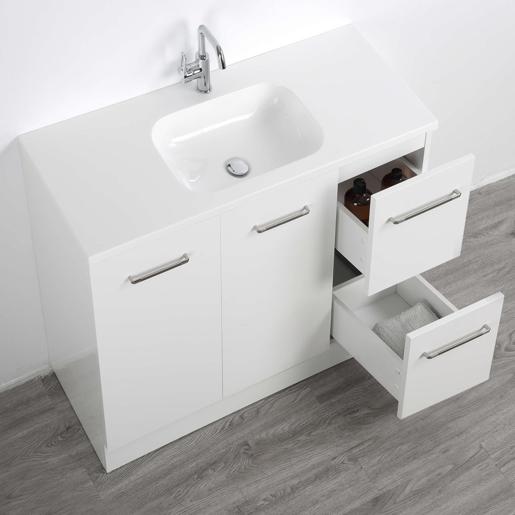 - Tủ lavabo nhựa đứng: Đặt dưới lavabo, có nhiều ngăn kéo hoặc cánh cửa để lưu trữ vật dụng cá nhân và sản phẩm vệ sinh.