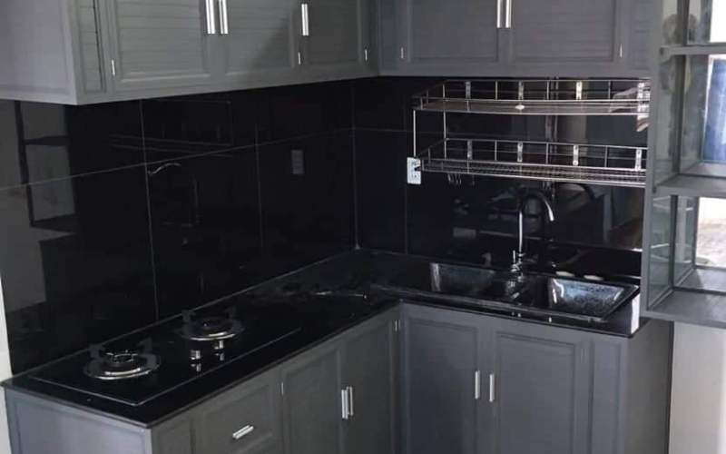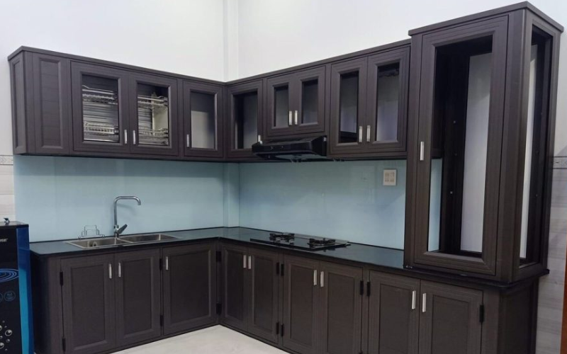 Tủ bếp nhôm kính chữ L