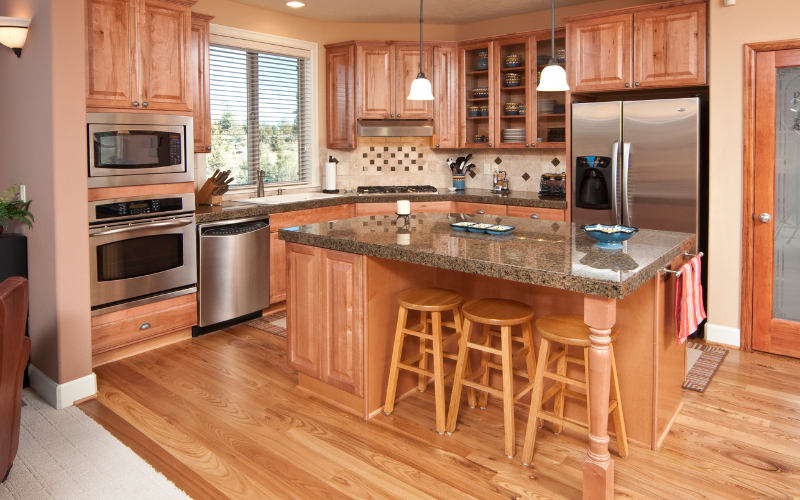 Tủ bếp chữ L tận dụng tối đa góc chết trong không gian bếp, giúp tăng diện tích sử dụng. Kiểu dáng này phù hợp với những không gian bếp vuông vắn hoặc có góc cạnh. Với thiết kế chữ L, bạn có thể phân chia khu vực bếp thành các khu vực chức năng riêng biệt, tạo sự thuận tiện trong quá trình nấu nướng.